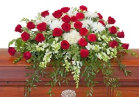Flowers for the service could include a spray for on top of the casket , a cremation flower bouquet to highlight the urn or a portrait. A bouquet for the alter will also add a special sentiment to the celebration of life.