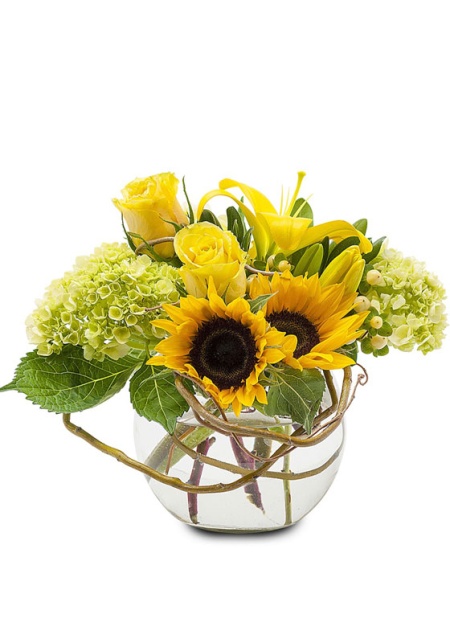 Rays of sunshine flower bouquet features a stunning blend of yellow blooms. This arrangement radiates joy, thanks and the warmth of the sun. It's sunflowers and delicate yellow roses add dimension to the bouquet.